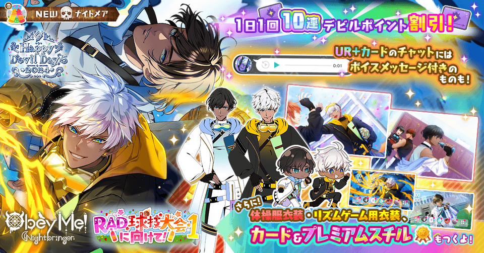 2023年4月にリリースし、全世界で熱烈なファンを獲得しているエヌ・ティ・ティ・ソルマーレ株式会社のモバイルゲーム『Obey Me! Nightbringer』が、今年の10月でリリース1.5周年を迎えます。アニバーサリーを記念して、各種キャンペーンを実施いたします。