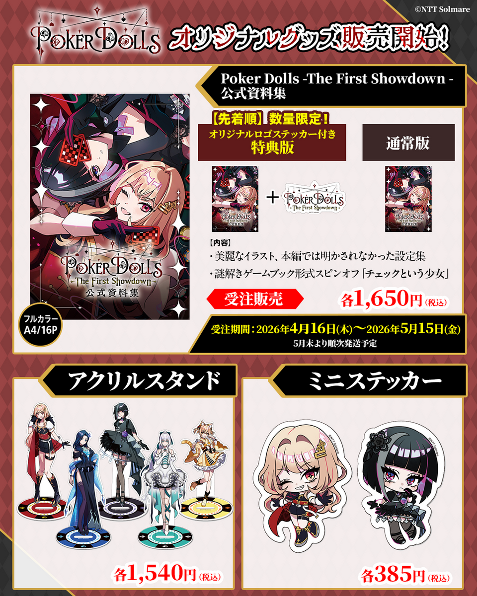 NTTソルマーレ株式会社(本社:大阪市中央区、代表取締役社長:朝日利彰、以下 NTTソルマーレ)は、「Poker Dolls Project」の公式サイトを開設しました。あわせてオリジナルグッズも販売を開始いたします。