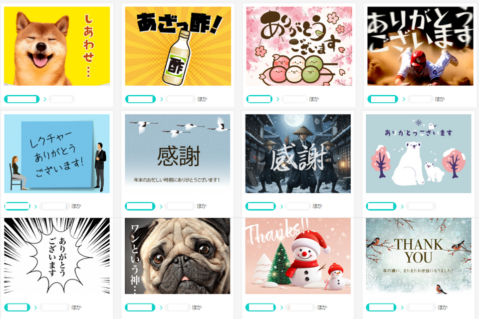 こちらも感謝に限らず、励ましや称賛など、動物やシュールなイラストなど多彩なデザインで様々な表現の「ありがとう」をデジタルならではのスピード感をもって伝えることができます。