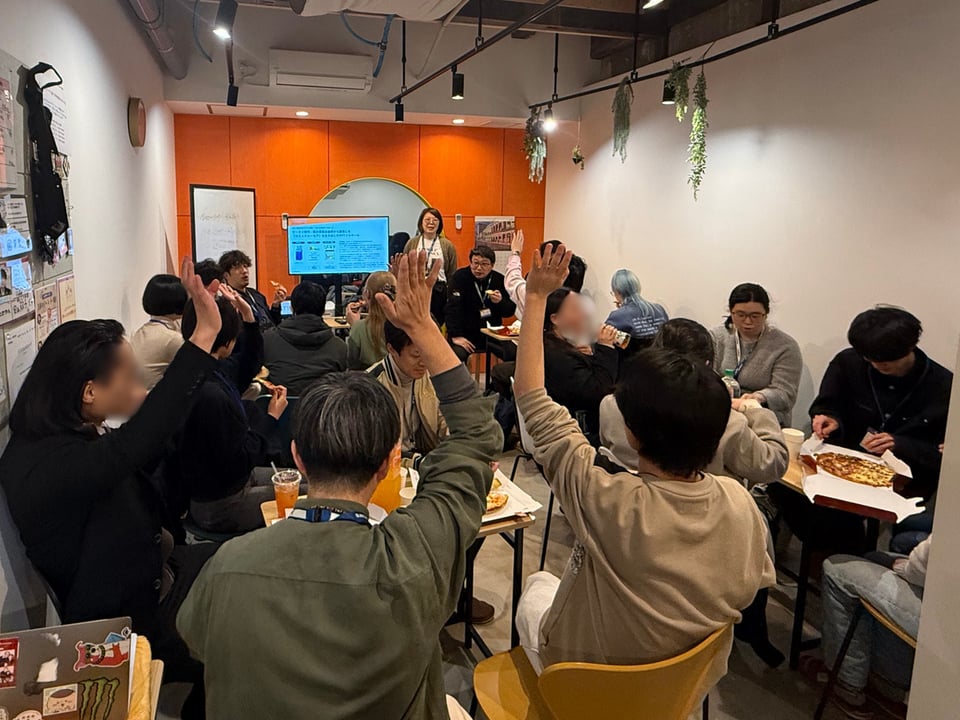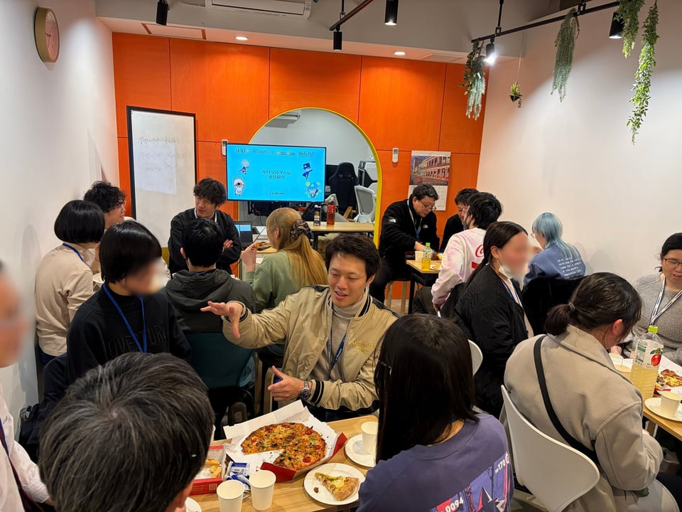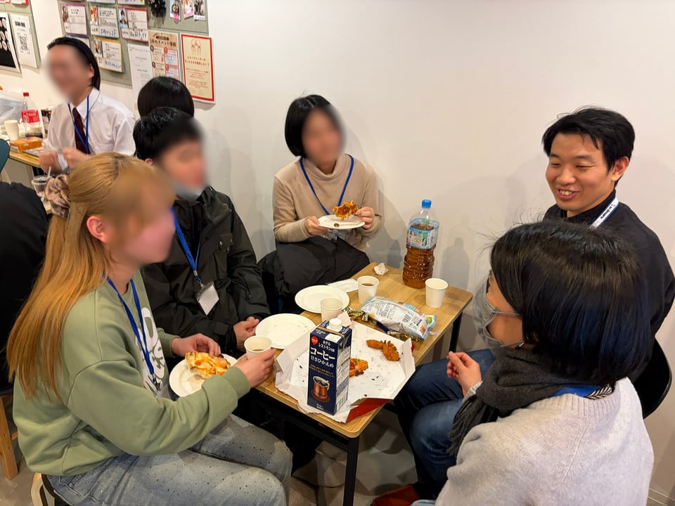 放課後の夕方開催ということもあり、事務局でピザやドリンクなどの軽食を用意。「飲食しながらでOK」というリラックスしたルールのおかげで、終始和やかな雰囲気のイベントとなりました。